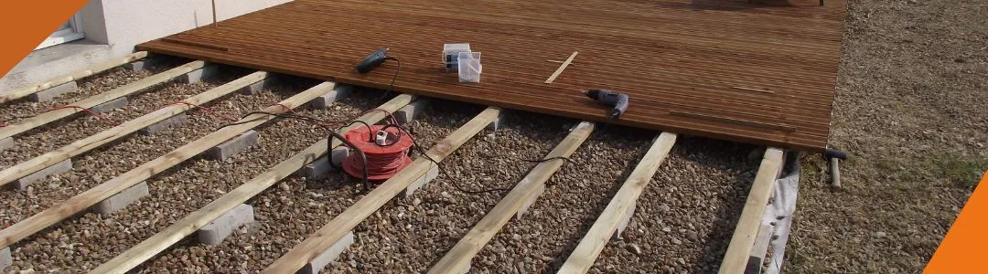 Укладка деревянных настилов, помостов и прочих «террас» прямо на грунт не производится, если хочется, чтобы конструкция прослужила долго. Кроме того, под ней обязательно должно быть пространство для циркуляции воздуха, стока талых и дождевых вод. Функцию основы может выполнить асфальт с уклоном или бетонная стяжка. При отсутствии уклона прорезаются штробы шириной 30 мм и глубиной 15 мм. Песчано-гравийная подушка в чистом виде тоже не подходит, поэтому поверх нее укладываются ж/б-плиты или металлические опорные балки. Наличие дренажа – обязательно!Создание настила на даче: основные мероприятия